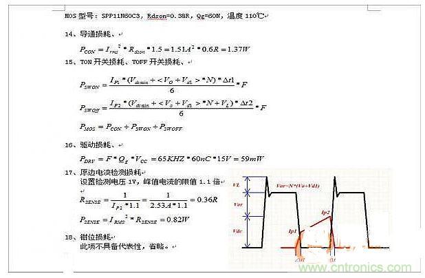 (關(guān)于開(kāi)關(guān)損耗和導(dǎo)通損耗,上面的計(jì)算方法應(yīng)該是正確的,參考《精通開(kāi)關(guān)電源》第5章。最有可能會(huì)出現(xiàn)的問(wèn)題是,測(cè)量的準(zhǔn)確性如何,因?yàn)檫@會(huì)導(dǎo)致計(jì)算值與實(shí)際值相差2--5倍。)