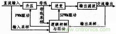 本文提出一種高性能全數(shù)字式正弦波逆變電源的設(shè)計(jì)方案。該方案分為前后兩級,前級采用推挽升壓電路將輸入的直流電升壓到350V左右的母線電壓,后級采用全橋逆變電路,逆變橋輸出經(jīng)濾波器濾波后,用隔離