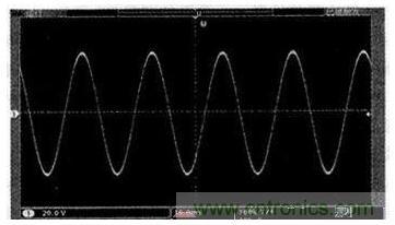 根據(jù)以上思想試制一臺400 W的樣機(jī),采用IRF3205作為推挽升壓的功率管,HER307作為整流二極管,全橋逆變功率管則采用IRF840.前級升壓的PWM波頻率設(shè)置為20 kHz,后級SPWM波的頻率設(shè)置為18 kHz,輸出濾波電感L為1 mH,輸出濾波電容C為4.7μF.實(shí)際測試正弦交流輸出電壓精度為220 V±1%,頻率精度為50 Hz±0.1%,THD小于1.5%,逆變效率大于87%,其滿負(fù)載時的試驗(yàn)波形如圖7所示(輸出經(jīng)20 kΩ/100 kΩ電阻分壓測到)。