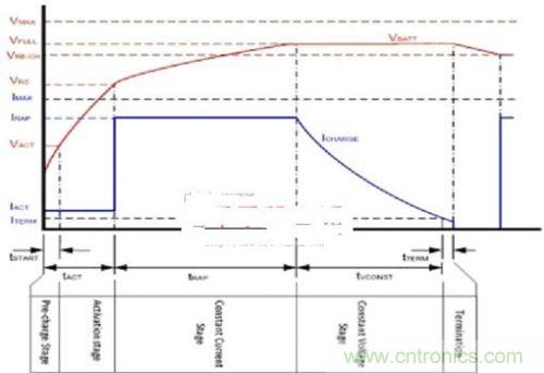 充電開始為預(yù)充階段,以檢查電池狀況是否良好。在此階段中,通常給電池提供電池容量5%到15%的少量電流,如果電池電壓上升到2.8V以上,則認(rèn)為電池狀況良好,可以進(jìn)入到激活階段。在此階段中,給電池提供相同的電流,但會(huì)持續(xù)更長(zhǎng)的時(shí)間。當(dāng)電池電壓上升到3V以上,則啟動(dòng)快充,并提供等于或低于電池容量的恒定電流。