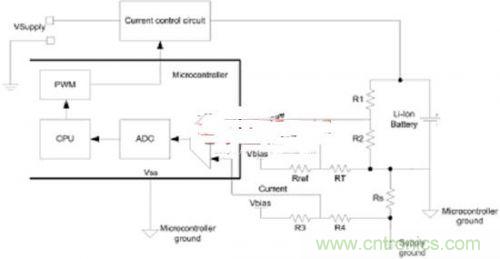 我們從充電曲線可以看出,單節(jié)鋰離子電池充電器需要可控的電流源。電流源輸出應(yīng)當(dāng)根據(jù)電池狀態(tài)而改變??紤]到上述要求,基于微控制器的實(shí)施方案需要以下功能模塊: