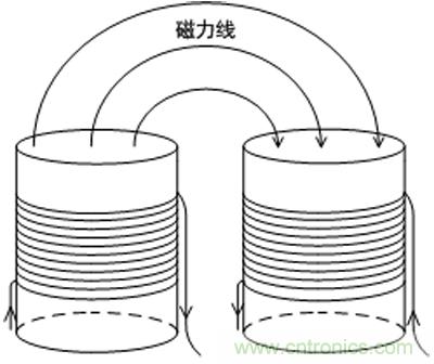 LC對噪聲和紋波抑制效果比較明顯,根據紋波頻率選擇合適電感電容值,但由于柱形電感價格低體積小的優點,所以一般LC中電感大都會選擇柱形電感,然而柱形電感是開放式磁結構,對周圍會產生較嚴重磁干擾,我們可以采用兩個電感并排放置,且電流流入方向相反,即有助于引導磁通從一個磁柱到另一個磁柱,從而可以降低電磁干擾,如圖3所示。