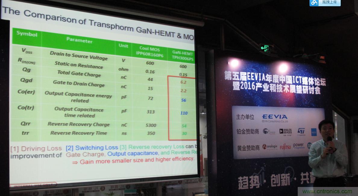 現(xiàn)場展示的基于HEMT器件的電源模塊方案與業(yè)界競爭解決方案的對比