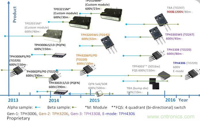 Transphorm依據(jù)基本發(fā)展路線圖進(jìn)行開發(fā),首先是合格的600 V器件和1000V器件。Transphorm的研究和開發(fā)還在繼續(xù),現(xiàn)在推出了600V的擴(kuò)展系列,采用更低的R(ON)設(shè)備和高功率封裝(含模塊),然后是繼150V器件之后的1200 V器件。據(jù)Eric透露,今年會推出900V和1200V的產(chǎn)品,低壓方面會提供150V的產(chǎn)品。據(jù)悉,未來Transphorm還將推出代替Cascode的E-Mode創(chuàng)新結(jié)構(gòu)技術(shù),將會把當(dāng)前結(jié)構(gòu)中存在的不利因素解決掉,實(shí)現(xiàn)更卓越的功率器件性能。將提供更大功率的產(chǎn)品,從2014年推出第一顆TO240,電流從30、40,逐步往60、70、80的方向發(fā)展。