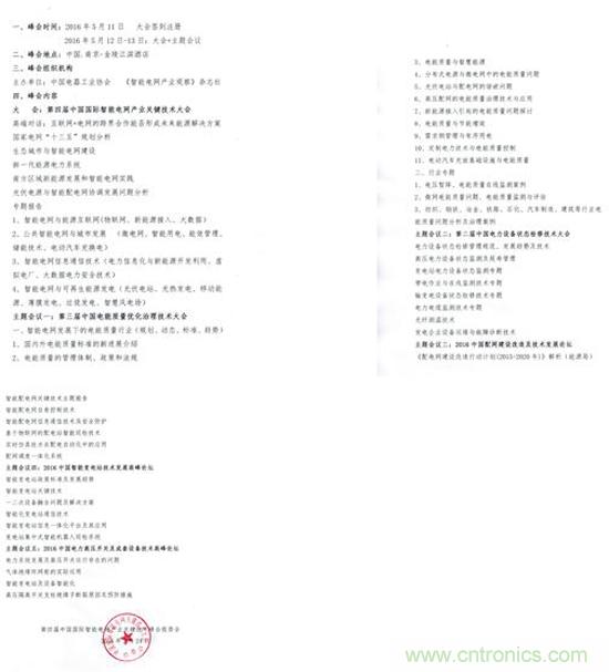 【導(dǎo)讀】由中國電器工業(yè)協(xié)會(huì)和《智能電網(wǎng)產(chǎn)業(yè)觀察》雜志主辦、上電傳媒承辦、新風(fēng)光電子科技股份有限公司協(xié)辦的“2016第四屆中國國際智能電網(wǎng)產(chǎn)業(yè)關(guān)鍵技術(shù)千人峰會(huì)暨產(chǎn)品展示會(huì)”將于2016年5月12-13日在中國南京隆重舉辦!1200人的行業(yè)盛宴,100位專家的權(quán)威報(bào)告,上百家主流媒體的全力支持……2016年最有價(jià)值、最有影響的行業(yè)峰會(huì),不容錯(cuò)過!