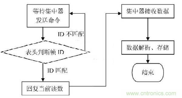 集中器發送CAN數據命令包到CAN總線,表頭根據各自的ID選擇接收讀表命令后發送應答數據到CAN總線上。