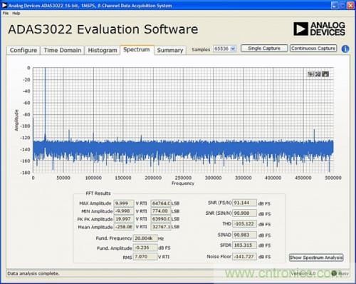 圖5. 使用EVAL-CED1Z評(píng)估板和軟件的ADAS3022 FFT輸出