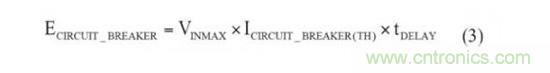 所選保護控制器也許具有一個故障安全斷路器的電流閥,從而觸發瞬時輸入斷開。斷路器的能量計算與短路情況下相類似,不過,保護控制器會設定一個不同的電流閥值。MOSFET上有可能出現的最差情況能量由控制器的響應或延遲時間計算得出。