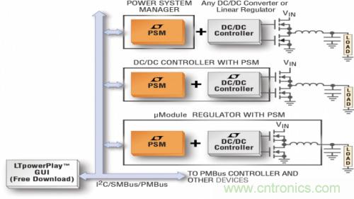 由于要面對這些挑戰(zhàn),因此凌力爾特決定開發(fā)一個 PSM 產品線,其包括具集成型功率 FET 柵極驅動器和豐富齊全之電源管理功能 (通過基于 I2C 的 PMBus 來使用) 的同步降壓型 DC/DC 控制器。這些功能包括高精度基準和可提供 ±0.5% DC 準確度的溫度補償型模擬電流模式控制環(huán)路、經過校準以不受工作條件之影響的簡易型補償、逐周期電流限制、快速和準確的均流、以及針對線路電壓和負載瞬變的響應,并不存在任何與 ADC 量化相關聯(lián)的誤差,此類誤差是采用 “數(shù)字” 控制之產品中所常見的。該產品線的某些產品還內置了可提供輸入和輸出電壓及電流、占空比和溫度之數(shù)字回讀的 16 位數(shù)據采集系統(tǒng)。另外,還整合了通過一個中斷標記及一個 “黑匣子” 記錄器 (其負責存儲發(fā)生某種故障之前的轉換器工作狀況) 實現(xiàn)的故障記錄功能。