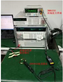 精度測試所使用試儀器為FLUKE5720校準(zhǔn)器、六位半萬用表DMM6000。測試步驟,校準(zhǔn)器FLUKE5720輸出不同的被測電流值,萬用表讀取電流探頭的響應(yīng)電壓值。