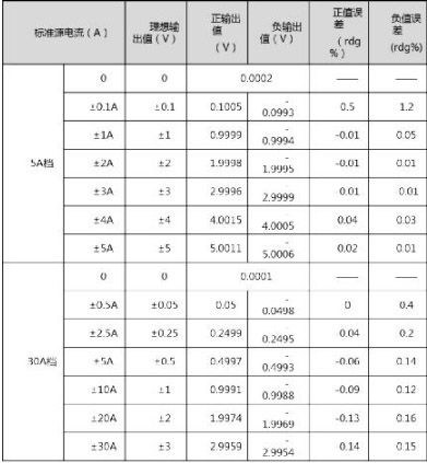 ZCP0030-50標(biāo)稱直流精度為1%rdg±1mV,實測精度如表1所示。