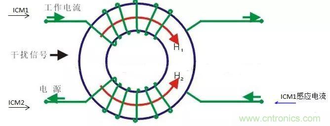 共模扼流圈工作原理如下: