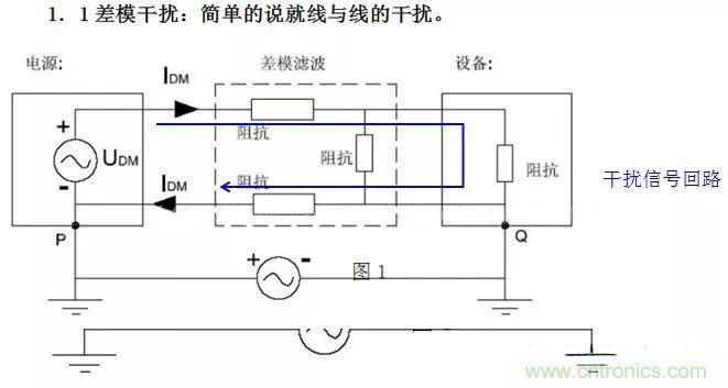2.差模干擾(Differential-mode Interference):兩導線上的干擾電流,振幅相等,方向相反稱為差模干擾。(任何兩個載流體之間不希望有的電位差)