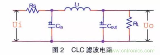根據(jù)開關(guān)電源的公式,輸出紋波和輸出電容值成反比,電感內(nèi)電流波動大小和電感值成反比。理論上使用標稱值大的電容、電感可以得到較好的紋波抑制效果。實際應(yīng)用中,CLC 電路中不同類型的電解電容及不同標稱值的電容、電感對電源紋波的抑制效果究竟有什么樣的影響尚無相關(guān)文章指出。因此,有必要對CLC 濾波電路進行實際測試研究。