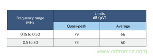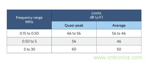 圖 1:CISPR 22 標(biāo)準(zhǔn) B 類(lèi)傳導(dǎo) EMI 規(guī)范。