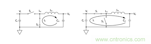 最大程度減小高 di/dt 電流環(huán)路:將 LO、CO 和 S2 正確布置在一起,最大程度減小 I2 電流環(huán)路。然后,使這一組元件靠近 S1 和 C1,最大程度減小 I1 電流環(huán)路。使用 buck 調(diào)節(jié)器 IC(即集成功率開(kāi)關(guān) S1 和 S2 的 buck 控制器)時(shí),選擇具有好的引腳排列從而支持這種最小化的 IC 非常重要。相同道理也適用于使用電源模塊的情況。