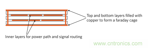 圖 10:多層 PCB 板的法拉第屏蔽。