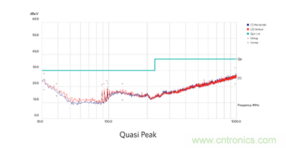 圖 3:CISPR 22 標(biāo)準(zhǔn) B 類(lèi)輻射 EMI 規(guī)范。