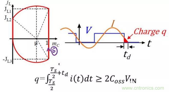 要回答這個(gè)定量問題,其實(shí)是不那么簡(jiǎn)單的。對(duì)于PWM converter,參考quasi-square-wave ZVS buck converters,我們是可以畫出state plane,然后根據(jù)state plane圖的幾何關(guān)系定量分析出來的,但是非常繁瑣,常常是七八個(gè)三角函數(shù)等式求解。所以我個(gè)人愚見,在設(shè)計(jì)上,就讓開關(guān)頻率小點(diǎn),電感值小點(diǎn),讓電感電流ripple足夠大,能達(dá)到負(fù)值就差不多了。對(duì)于resonant converter,倒是可以簡(jiǎn)單地通過積分方法,算出i與t的積分,讓這個(gè)it積分大于Coss上的charge就行。比如已知impedance,算出V與I的phase shift,然后換算成時(shí)間td,然后在td上對(duì)電感電流進(jìn)行積分,只要這個(gè)積分大于等于Coss*Vin就行了。