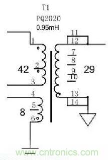 在本電路中,我們選用的磁芯型號為