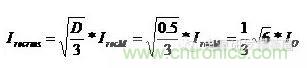 有效值電流與輸出電流平均值的關系為: