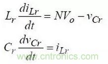 (2)Lr、Cr和電壓源-nVo串聯(lián)諧振,滿足下面條件: