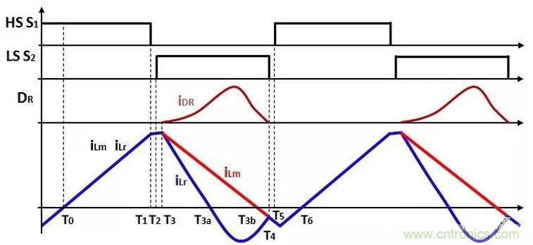 因此,次級(jí)整流二極管的電流iDR為iLr和iLm的電流差值: