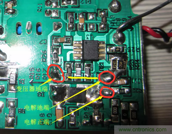 二:Y電容回路走線越短越好先經過變壓器地再回到大電容地,不與其它信號線交叉;