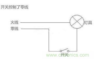 1、開關控制了零線,火線直接進了燈具