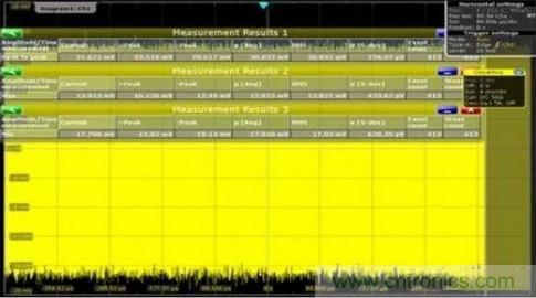 根據傳統(tǒng)電源調試經驗,首先在該網絡上增加了一些去耦電容,增加電源網絡的阻抗余量, 保證在中頻段的電源網絡阻抗都能滿足該應用場景的需求。結果紋波僅降低幾mV,改善微乎其微。產生這個結果有幾個可能:1、噪聲處在低頻,并不在這些去耦 電容起作用的范圍內;2、增加電容影響了電源調節(jié)器VRM的環(huán)路特征,電容帶來的阻抗降低與VRM的惡化抵消了。帶著這個疑問,我們考慮使用示波器的頻域 分析功能來查看電源噪聲的頻譜特性,定位問題根源。