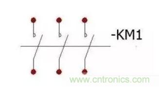 來看一下接觸器在電路中是怎樣表示的,下圖為接觸器主觸點在電路圖中的表示