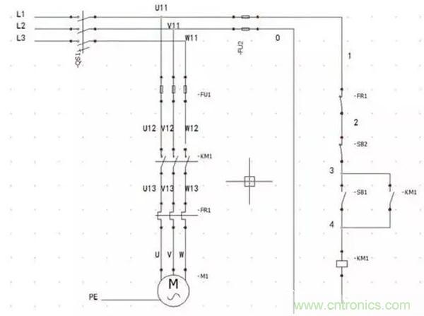 接下來我們看一下是怎么應用的,先看一下一個帶有過載保護的接觸器自鎖控制的電路