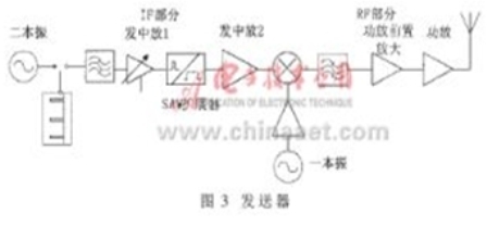 脈沖的擴展:165MHz的本振脈沖,經過開關截取0.1μs寬度的脈沖,經放大?帶通濾波后,得到一個鐘形脈沖,送到SAW擴展器。SAW擴展器的激勵脈沖可以是一個寬度小于8ns的窄脈沖,也可以是一個帶有載波的鐘形脈沖,為了得到較大的功率,在此選用了鐘形脈沖。