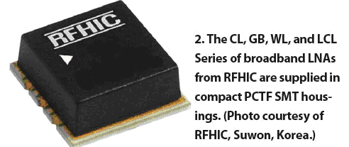 韓國著名射頻微波模塊廠商RFHIC公司,已經開始使用PCTF技術生產其低噪聲放大器、增益模塊、寬帶低噪聲放大器(包括其CL、GB、WL、LCL系列產品)(圖2)。這些產品體積小(10.16×10.16X 4 mm)、價格低適于大批量生產。得益于PCTF技術的散熱特性和可靠性,該公司的寬帶低噪聲放大器產品能提供有益的高增益、低噪聲性能。對于這些應用,PCTF技術具有承受高溫、散熱性好、易于制造以及可靠性高等優點。