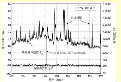 噪聲電平升高表示有源器件和電阻器產生的噪聲影響減少了。除非是內置天線,其發射元件的增益很低,一般情況下,天線的實際溫度支配著噪聲溫度。而且,噪聲背景強表示,在低噪聲的理想情況下,可以降低對發射元件的要求,并不會明顯地降低G/T。這點可以定性地這樣理解:效率高的天線接收到的信號大于效率低的天線接收到的信號,但是它接收到的噪聲也比較大。因此,在天線輸出端的信噪比并沒有好一些。第二點是接收器的噪聲指數NFrec也增加了天線輸出的噪聲,但是只要放大器的增益相當大(即Gamp>NFrec),它的影響就很小,與無源天線相比,這就提高了系統的性能(從噪聲背景方面講)。要注意的一點是,這兩方面(也就是背景噪聲和NFrec)的作用一般是分不開的。例如,背景噪聲溫度高時,接收器的噪聲指數起的作用就小,反過來也是這樣。
