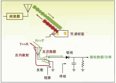 圖1:無(wú)源標(biāo)簽對(duì)射頻 RF能量進(jìn)行整流并調(diào)制信號(hào),然后反向散射反射給閱讀器。