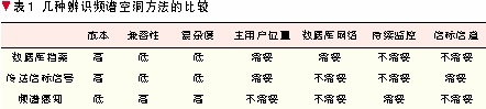 認知無線電(CR)概念由Joseph Mitola博士提出,其主導思想是實現(xiàn)伺機的動態(tài)頻譜接入,即非授權用戶(也稱次用戶或認知用戶)通過檢測,機會性地接入已分配給授權用戶(或主用戶) 但暫時很少使用甚至未被使用的空閑頻段,一旦主用戶重新接入該頻段,次用戶迅速騰出信道。這種技術需解決的首要問題就是如何快速準確地獲取授權頻譜的使用情況,目前主要有3類解決方案:建立數(shù)據(jù)庫檔案、傳送信標信號和頻譜感知。表1從多個方面對3種方案進行了比較,其中頻譜感知方案因具有建設成本低、與現(xiàn)有主系統(tǒng)的兼容性強等突出優(yōu)點,得到了大多數(shù)研究學者的認同;另外兩種由于受到政治、經(jīng)濟等因素的制約而很難實現(xiàn),對其研究相對較少。