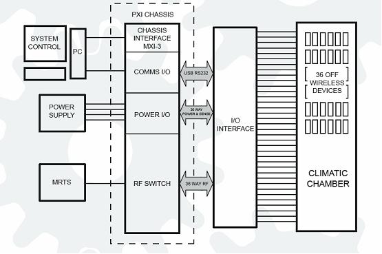 PXI機箱包含了在測試裝置和待測手機之間進行轉換的模塊。系統控制器在MXI-3接口通過運行程序實現對開關的控制。