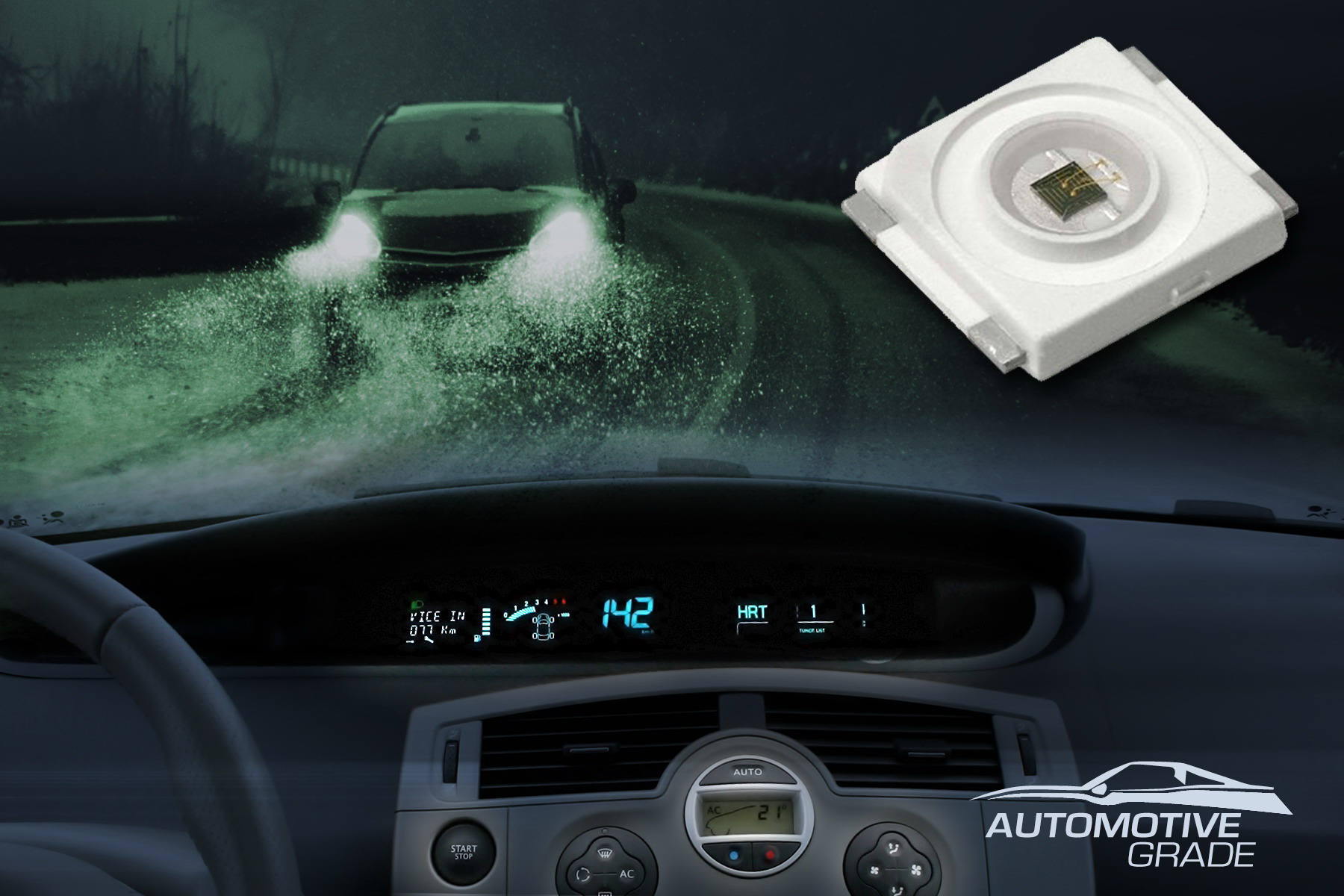 Vishay的SurfLight表面發(fā)射器技術(shù)使用一種獨特的硅片結(jié)構(gòu),在這個結(jié)構(gòu)中所有從半導(dǎo)體內(nèi)產(chǎn)生的光都從芯片的頂表面發(fā)射出來,從而使VSMY7850X01在1A電流下的發(fā)光強度高達170mW/sr,光功率高達520mW,正向壓降只有2V;SMY7852X01在250mA電流下的發(fā)光強度高達42mW/sr,光功率高達130mW,正向壓降只有1.8V。近日發(fā)布的兩款器件通過了AEC-Q101認證,半強角為±60°。