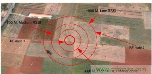 現(xiàn)在,我們將節(jié)點(diǎn)2替換為增益(輸出功率)為0dB的MRF24J40MA模塊。由于節(jié)點(diǎn)1的接收靈敏度為-95dBm,故衰落余量為 35dBm(95dB~60dB)。此外,還存在因環(huán)境[在視距(LoS)內(nèi)]導(dǎo)致的損耗(衰落),這會(huì)使信號(hào)級(jí)別進(jìn)一步降低20dB,此時(shí)的通信僅有 15dB到20dB的附加增益。