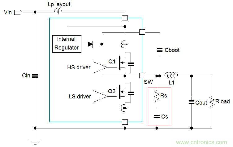 Buck架構DC/DC轉換器中存在兩個電流發生劇烈變化的主回路 :