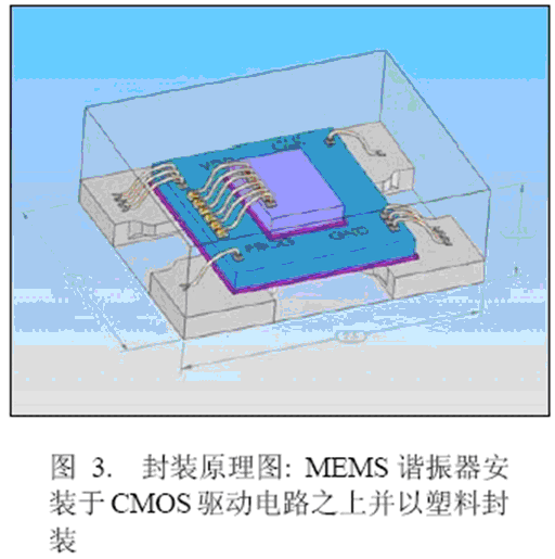 - 經(jīng)濟(jì)有效的封裝方法是將MEMS諧振器安裝在CMOS驅(qū)動電路之上