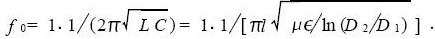 式中l為同軸電纜長度; E為填充介質的介電常數;D1 為芯線直徑;D2 為屏蔽網的內徑; L為填充介質的磁導率; μ0 為真空磁導率. 同軸電纜的分布電容與電感除與其長度成正比外, 還與屏蔽網的內徑和形狀密切相關。當同軸電纜足夠長時, 其分布電感均比較大; 此時外力引起的同軸電纜變形只會引起分布電容和分布電感的微小變化。因為分布電容與分布電感的變化趨勢相反, 在設計該傳感器時, 為了突出分布電容對傳感器性能的影響, 要在同軸電纜的芯線上串接一個較大的電感,使分布電感的變化率遠遠小于分布電容的變化率。同軸電纜的特性阻抗為