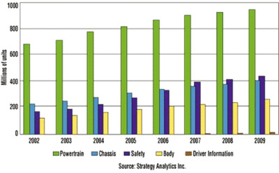 圖7 在汽車領域,MEMS被用于導航和信息娛樂設備中。
