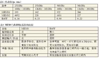 該研究采用已有測量技術對商用BAW與MEMS振蕩器的多種不同電特性進行了比較,在此基礎上進行了部分討論,并在表2中做了相應總結。結果表明,兩種技術是不可互換的。頻率偏差、MEMS振蕩器的低Q值與數(shù)字溫度補償都造成了許多應用中不可接受的頻率波動。