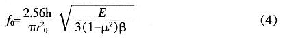 經(jīng)過分析,綜合考慮設(shè)計的要求,初步設(shè)定:h=20μm,R=200μm。其固有頻率可以按下式計算: