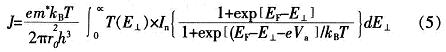 式中:e為電子電荷的大小,m*為GoAs電子的有效質(zhì)量,kB為玻爾茲曼常數(shù),T為絕對溫度,EF為費米能級,E1為入射電子垂直(縱向)能量。