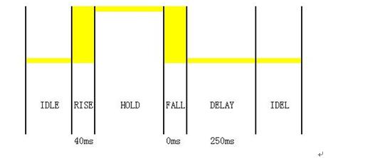 圖4是一個觸摸按鍵應(yīng)用中一次典型的按鍵波形,每個按鍵按下后,系統(tǒng)都需輸出對應(yīng)的電壓值以供其他系統(tǒng)檢測。該應(yīng)用要求響應(yīng)時間小于等于40ms,當(dāng)按鍵被長按時,需要一直輸出按鍵電壓,即使按鍵釋放后,仍需250ms時間保持原有按鍵電壓,之后停止輸出按鍵電壓,進(jìn)入空閑狀態(tài)。系統(tǒng)共包含12個觸摸按鍵,當(dāng)多個按鍵被同時按下時,系統(tǒng)不響應(yīng)。系統(tǒng)低功耗設(shè)計要求為,系統(tǒng)待機時沒有按鍵操作的平均電流應(yīng)至少小于1mA。