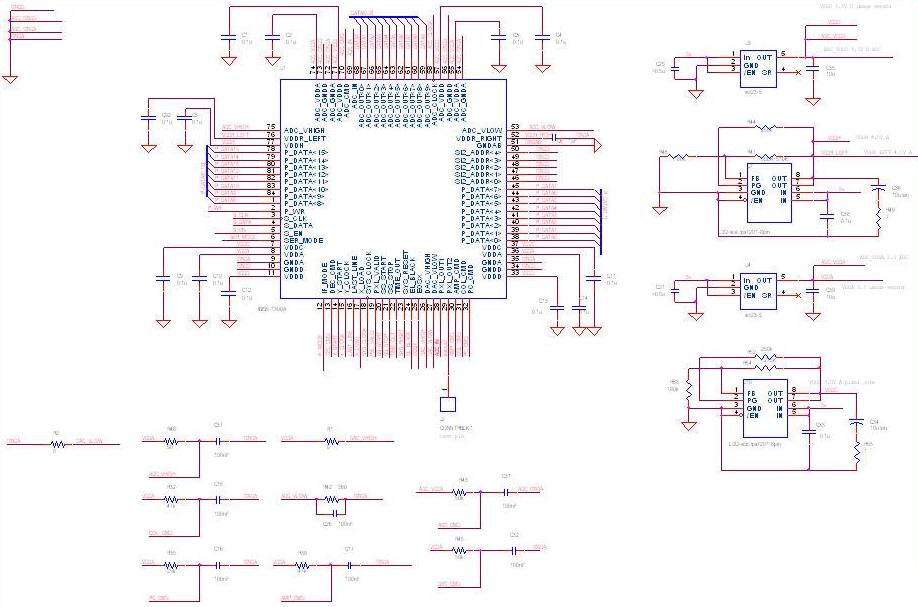 從硬件設(shè)計(jì)的原理圖可以看出,CMOS圖像傳感器只需提供少量的電源轉(zhuǎn)換器件即可正常工作,這是因?yàn)镃MOS圖像傳感器功耗很小,只需采用USB總線提供的5v電壓就可以驅(qū)動(dòng)其正常工作。另外CMOS圖像傳感器芯片僅需要少數(shù)的幾個(gè)外部控制信號(hào)即可完成圖像的采集(本系統(tǒng)的控制信號(hào)由USB數(shù)據(jù)傳輸板上的CPLD芯片提供),且芯片內(nèi)部集成了輸出放大器,數(shù)模轉(zhuǎn)換模塊,只需修改芯片中的特殊寄存器值即可改變輸出放大器的偏置電壓,增益等參數(shù),這樣就大大降低了硬件設(shè)計(jì)的復(fù)雜度和成品的體積,具有很高的應(yīng)用價(jià)值。