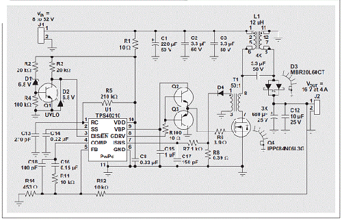 圖 2 使用耦合電感的 SEPIC(4A 時 16V)